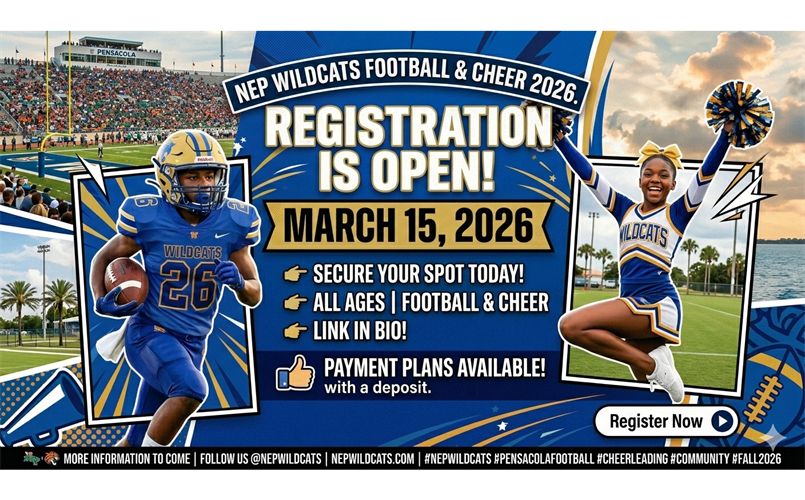 Get Ready, Wildcats! The wait is almost over! We are thrilled to announce that registration for the 2026 NEP Wildcats Football and Cheer season officially opens on: March 15, 2026